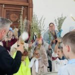 Затем отец Николай возгласил молитву на освящение ваий и окропил вербу святой водой.