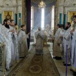 На сугубой ектении были произнесены прошения: «…о еже прияти молитвы нас, недостойных рабов Твоих, в сию годину испытания, пришедшую на Русь Святую…», а также прошение о «Преосвященных архипастырях, пастырях, монашествующих и мирянах земли Украинския, о единстве Церкви Христовы ревнующих, в заточении и гонениях сущих». Затем епископ Дионисий вознес молитву о Святой Руси. Также Архипастырь вознес молитву о мире на Святой Земле, читаемую ежегодно в Великую Субботу во всех храмах Русской Православной Церкви.