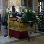 Затем диаконом было прочитано Евангельское повествование о том, как ангел Божий отвалил камень от дверей гробовой пещеры Господа, и о прочих событиях, произошедших при Воскресении Христа Спасителя (Мф. 28:1-19).