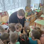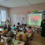 8 апреля, в Великую Среду, помощник благочинного по миссионерскому служению настоятель храма в честь Преображения Господня иерей Михаил Гусарев провёл встречу с воспитанниками подготовительной группы «Бельчата» Заболотовского детского сада.